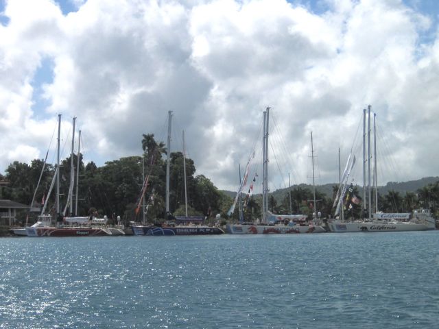 Au port, l'animation est grande car la "Clipper Race" fait escale à Port Antonio. C'est une régate sur monotypes qui fait le tour du monde en dix étapes avec des équipiers amateurs qui paient leur place à bord pour une ou plusieurs étapes. Dix bateaux sont aux pontons et du coup, le wifi est suroccupé. J'arrive tout de même à me connecter pour consulter la météo qui n'annonce rien de bon... du vent du sud depuis le milieu de la semaine pour une semaine environ. La saison des cyclones approchant, nous ne serons tranquilles qu'une fois en dehors de la zone, ou du moins plus au sud. A peine le bateau remis à l'eau, nous décidons donc de faire les sorties officielles et de partir le lendemain matin pour atteindre Providencia avant le vent contraire. Tant pis pour le polish, tant pis pour la Jamaïque qui était pourtant bien sympathique. La météo est prioritaire.