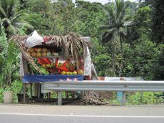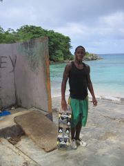 Nous allons souvent en ville pour nous approvisionner au marché et dans les petits supermarchés. La différence avec Cuba est énorme et les montagnes de produits divers s'entassant dans tous les coins nous paraissent du coup impressionnantes. Cela ne veut pas dire que les Jamaïcains ont de quoi acheter tout cela... de loin pas ! Il y a beaucoup de mendiants dans la rue. Nous voyons aussi beaucoup de rastas mais peu ont l'air de suivre leur philosophie qui voudrait qu'ils ne boivent pas d'alcool. L'un d'eux, Milton, nous vend de la musique reggae, des copies de CD en fait. Un autre arrive sur un radeau de bambous vers le bateau pour nous vendre un régime de bananes ou des mangues.
