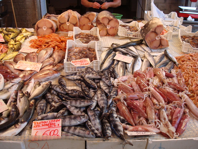 10-11 septembre 08 : Arrivée à Syracuse à l'heure de la sieste. Idéal pour récupérer un peu. On retrouve ensuite avec plaisir les gelati, les restretti et, le lendemain, le merveilleux marché. Comme la traversée ne nous a pas amené de poisson, nous achetons du thon rouge... et puis des crevettes, des calmars... Incroyable qu'une telle abondance existe ici alors que les étals sont si pauvres en Grèce. L'escale nous permet aussi l'achat de matériel technique, les lessives, l'approvisionnement en produits italiens et le repas dans une trattoria pour changer des tavernas. |
