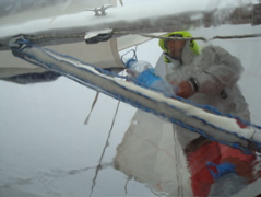 A la tombée de la nuit, les voiles battent dans tous les sens... plus assez de vent par rapport à la vague qui se maintient encore. Nuit au moteur.