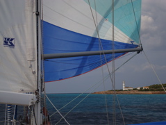 8-9-10 septembre 08 : Belle traversée de la mer Ionienne en 51 h (dont 13 de moteur). Après un début avec de vent contraire, nous avons bénéficié de vent du NW de 10-15, puis 15 - 20 noeuds avec quelques "trous". Nous avons même hissé le spi pendant 3 heures à l'approche de la Sicile, le vent tournant au NE. Inespéré ! Mais pas de poisson ! |