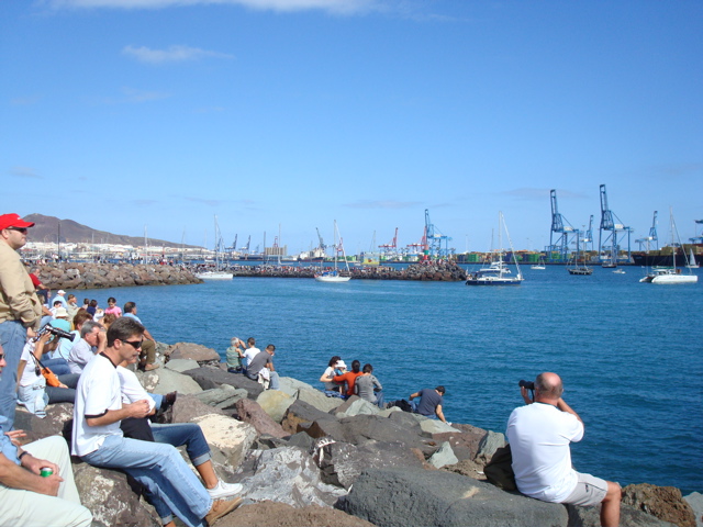 Dimanche 23.11 : Nous avons passé 4 jours au mouillage, en attendant le départ de l'ARC, le rallye avec lequel que nous avions traversé en 2005. Aujourd'hui, nous regardons les 250 bateaux sortir du port depuis la digue. Les canariens sont là en masse pour suivre l'évènement.