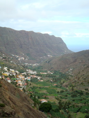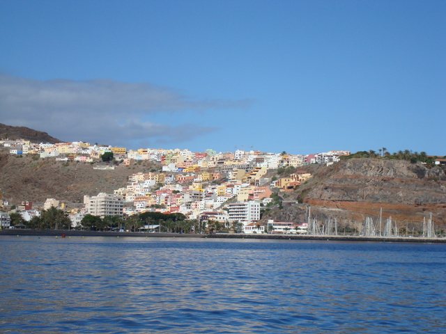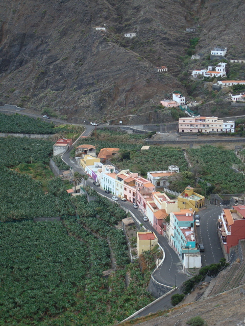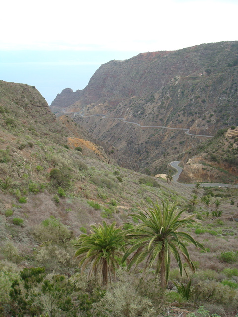 Lundi 1.12, mardi 2.12 : Arrivés à La Gomera à 8h du matin, le port est plein comme un oeuf. Tout le monde attend le vent qui se fait désirer sur l'Atlantique. Comme il se décide enfin. les voiliers s'en vont pour la traversée et libèrent des places. On retrouve Cordélia et Joseph nos amis hongrois sur Epiphany et Jean-Claude sur Drisar. Il a troqué son équipage d'ados de 1000 sabords pour... sa femme Christiane et changé de voilier. Il nous donne des tuyaux précieux pour le Cap Vert, la Guyane, la République Dominicaine et Cuba. Le mardi, nous louons une voiture pour faire un tour de cette île qui a réputation d'être superbe. Les paysages sont effectivement somptueux avec ces vallées abruptes entourant des petites plaines fertiles, plantées de bananiers, ces villages colorés accrochés aux pentes et les palmiers ponctuant le tout. Mais le soleil ne veut pas se lever. Dommage !