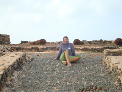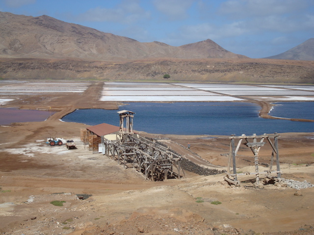 Jeudi 11.12 : Nous devons terminer les formalités d'entrée. Un capitaine de port très sympathique nous donne des explications pour la suite de notre voyage. Il nous parle aussi d'un bateau de pêche de Boavista qui a disparu en mer, entre Boavista et Santiago. Ils n'ont plus de nouvelles depuis plus d'une semaine. Il nous demande d'en parler autour de nous. Nous prenons ensuite un taxi pour aller visiter les fameuses salines de Pedra Lume. Le site est grandiose avec les anciens poteaux du téléphérique, les différentes couleurs des salines et les parois du cratère. L'eau remonte par le fond, qui est à hauteur de la mer. Avant l'arrivée des portugais déjà, les maures venaient s'y ravitailler en sel. Les salines ne sont plus en service depuis 1984, à l'exception d'une toute petite production que les Salins du Midi extraient pour la consommation locale. L'après-midi, nous levons l'ancre pour l'immense baie de Mordeira, Un peu plus au sud. Nous y passons la nuit totalement seuls.