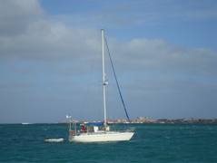 Vendredi 12.12 : Départ vers 9 h pour Boavista. Le vent souffle fort et la vague déferle parfois. Nous ne mettons que 4 heures pour faire les 30 nm entre les deux îles. La pêche est toujours aussi catastrophique. On ne sait pas quels sont les monstres qui peuplent les profondeurs mais nous n'arrivons à remonter aucun d'entre eux. Ils peuvent, de leur côté, faire une association des poissons ayant un rapala coincé dans la gueule ! On essaie d'aller plus lentement, de mettre des rapalas plus gros, plus petits, des poulpes... rien à faire ! A notre arrivée à Boavista, nous découvrons, au marché aux poissons, la taille des coryphènes, des thons et des marlins... On a compris ! On ne pouvait pas lutter ! Du coup, nous achetons un gros morceau de coryphène.