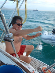 Lundi 24.11 : Nous avons une place dans la marina. Nous avons de nombreux problèmes techniques à régler, sachant que les mois suivants ne nous offriront plus l'occasion de remédier à des pannes importantes. Quel stress ! A peine le temps de boire un verre de temps en temps avec les voisins, Nadine et David sur Bella, ou avec Hervé, ancien du CER, propriétaires du catamaran Quasar que nous avions déjà rencontré aux Antilles. C'est en entrant dans la marina qu'on se trouve nez à nez avec son annexe. "Mais qu'est-ce que tu fais là ?" "Et toi ?" Retrouvailles bien sympathiques qui nous montre que les routes des navigateurs se croisent et se recroisent souvent par hasard.