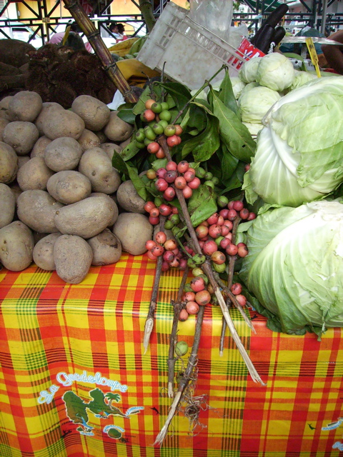 J'ai beaucoup pensé à toi au marché de Pointe-à-Pitre, un des plus beaux des petites Antilles à mon goût. Toi, la reine du potager, la spécialiste des légumes anciens, toi qui m'a initié à la culture des topinambours et qui a appris à Mimi à faire la salade d'herbes sauvages, tu te serais régalée au milieu des ces stands colorés, couverts de légumes et fruits exotiques.