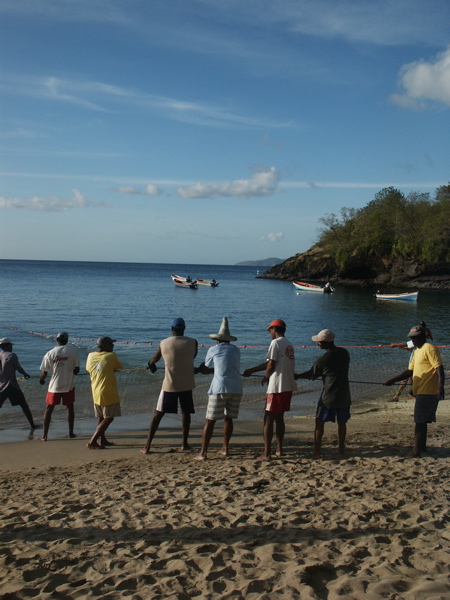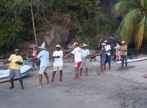 Quelques pêcheurs de Martinique ont gardé la tradition de la pêche à la senne. C'est le cas des pêcheurs de l'Anse Dufour.