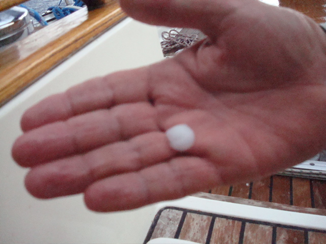 Comme les événements importants vont par deux, nous avons vécu aussi notre premier orage de l'année sur les côtes d'Elafonisos. C'est peut-être parce que Pierre venait d'ôter deux vitres aux capots pour les remplacer !