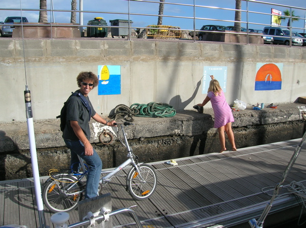 24 novembre 2008 : C'éait un joli petit vélo... c'était il y a exactement 3 ans, ici à Las Palmas. Nous prenions le départ de l'ARC, un grand rallye traversant l'Atlantique. J'inaugurais mon joli vélo. Cette année, nous avons regardé le départ depuis la digue. Le vélo a été volé cette nuit. Il faut qu'on s' habitue à ne plus afficher de signe extérieur de richesse... Pourtant, de la Porsche au petit vélo, on avait déjà fait un gros effort !