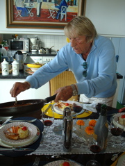 13 octobre 2008 : Cette semaine en Suisse a été si remplie, si pleine de bons moments en famille et avec les copains, que nous n'avons pas eu le temps de mettre le site à jour. Du coup, la photographe a chômé aussi. Heureusement, j'ai fait une photo, une seule... de Pierre Bonjour père en pleine action ! La preuve que les Bonjour sont cuisiniers de père en fils.