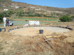 2 juin 2008 : Santorin pile et face : D'un côté le cratère et ses hôtels de luxe surplombant la mer, de l'autre, à quelques kilomètres, un paysage agricole en pente douce où le grain de blé est encore séparé de la paille sur des aires de battage (grâce aux ânes...voir le joli diaporama trouvé sur Internet)