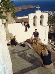 18 juin 2008 à Lispsos : Sans bouger, on peut compter 12 églises ou chapelles sur une toute petite île du Dodécanèse. Et il y en a encore beaucoup d'autres !