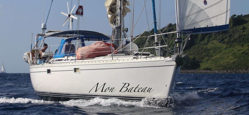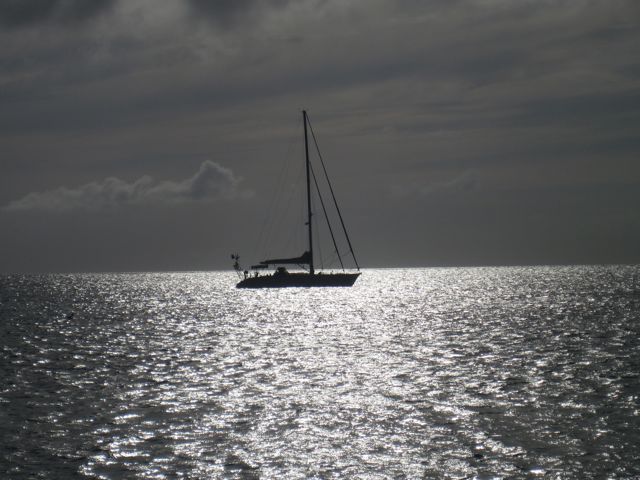Samedi 11 juin : Mer d'huile pour rallier Les Saintes, mais du mauvais temps étant annoncé sur les îles du nord, nous nous dépêchons de gagner le sud... au moteur. Hier, entre Les Saintes et la Martinique, des dauphins sont venus jouer à l'étrave. L'un d'eux était complètement fou et essayait de sauter le long de la coque pour toucher la main de Pierre. Ensuite, il nous a fait un show avec des sauts de deux mètres hors de l'eau. Nous sommes arrivés cette nuit à Ste Anne en Martinique par une très belle navigation à la voile (enfin !) au vent de l'île.