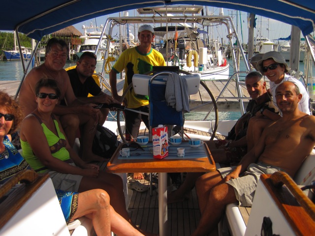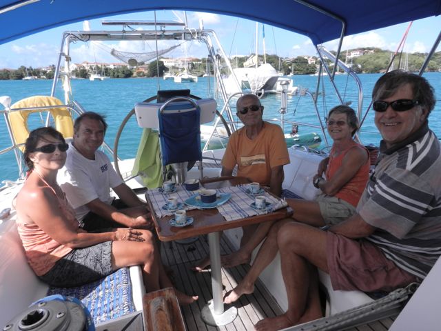Café de Noël dans le cockpit ce matin avec Jean, Françoise, Gislaine et Pierre, en compagnie desquels nous avons mangé la dinde au restaurant hier soir.