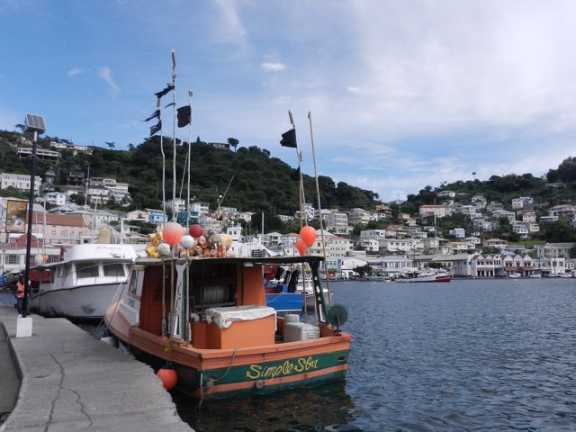 Mercredi 7 décembre : Nous retrouvons avec un grand plaisir St-George, capitale de Grenade, avec ses maisons en briques