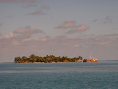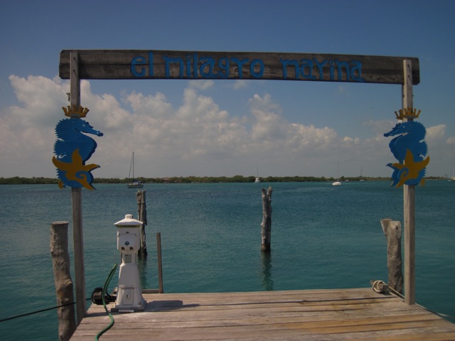 Mardi 1 mars 2011 : Repos pour la photographe ! Après les semaines épuisantes pour l'index droit à Guanaja et Rio Dulce, la remontée rapide du Belize, avec de belles navigations dans le courant portant au nord le jour et des arrêts derrières des cayes de mangrove la nuit, ne présente pas d'intérêt particulier. Notre tirant d'eau (encore lui...) ne nous permet pas d'aller sur la barrière extérieure. J'ai bien essayé d'immortaliser les lamentins mais ils ne se sont pas montrés coopérants. L'arrivée à notre dernier mouillage, sur l'atoll de Turneffe, m'a enfin permis un petit clic, suivi d'un grand clac quand les garde-côtes sont arrivés pour contrôler nos papiers, que nous n'avions pas faits. Nous pensions traverser rapidement le Belize en profitant de l'abri de la longue barrière de corail, sans aller à terre. Nous avons eu beau expliquer que le vent fort nous avait retenus plus longtemps que prévu et que nous partions le lendemain à 6h, le petit chef n'a rien voulu savoir. Il nous a accusés d'entrée illégale sur le territoire du Belize et nous a donné le choix entre retourner à terre faire les formalités ou lui "payer la taxe" sur place. Il n'a même pas pris la peine de relever le nom du bateau !