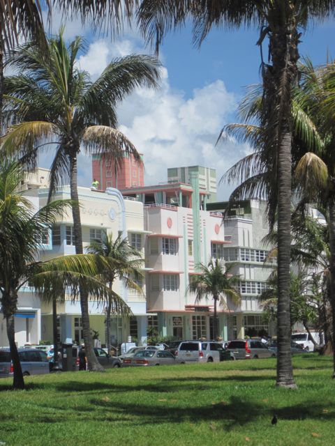 Mardi 26 avril 2011 : Nous sommes venus jusqu'aux USA principalement pour réparer la génératrice. Nous en avons profité pour d'autres achats intéressants et d'autres réparations bienvenues. Après une semaine d'American Way of Life, courant avec notre grosse Ford de supermarchés en shipchandlers entre deux plongées dans la câle moteur, nous nous octroyons enfin un jour de congé et de visite à Miami Beach. Plus précisément, c'est le quartier Art Déco de South Beach qui nous attire avec ses magnifiques façades et son architecture extravagante. C'est au Delano, hôtel/musée, que j'ai trouvé la chaise pour promener Pierre après son opération !
