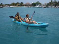 Mardi 5 avril 2011 : Les exploits sportifs continuent... après les escaliers des temples mayas, nous nageons, snorkelons et kayakons à Isla Mujeres. Au coucher du soleil, c'est le repos bien mérité et la contemplation depuis le cockpit , avec parfois la chance d'avoir la compagnie d'un pélican.