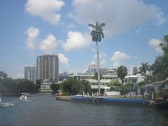 C'est que nous allons au pays de la démesure... 72 heures de navigation, parfois dans le Gulfstream, parfois à sa recherche, et nous embouquons la New River à Fort Lauderdale. Ce n'est pas l'ambiance du Rio Dulce ! Mais c'est étonnament plaisant, bordé de propriétés bien fleuries, un peu stressant tout de même car c'est dimanche et les bateaux de toutes tailles sortent pour la promenade. Nous remontons sur 4 nm, traversons en demandant l'ouverture de cinq ponts, dans le but de trouver ue marina abordable, à moins de 100 dollars la nuit si possible... démesure je vous dis !