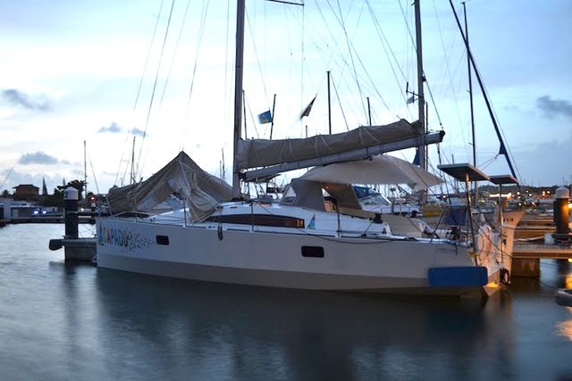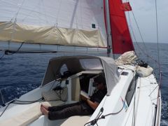 Ici, celles de Capucine et Adrien, un jeune couple dynamique, entreprenant, créatif et enthousiaste que nous avons rencontré récemment. Alors que la plupart des jeunes achètent un ancien bateau pas trop cher et lui font un petit lifting, eux ont choisi de faire construire une coque, après en avoir conçu les plans avec un ami architecte naval. Ils l'ont équipée eux-même intérieurement et accastillée puis ils sont partis pour un tour du monde de deux ans... un peu en retard sur les saisons habituelles pour ce genre de projet puisqu'ils ont traversé la Med en mars, l'Atlantique fin mai et passeront Panama fin août ! Ils continuent de travailler à bord grâce à internet, Capucine étant info-graphiste et Adrien dessinant des voiles.
