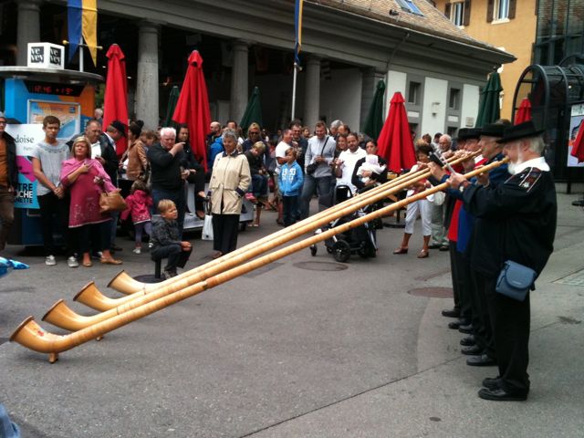 Eh bien, nous sommes en Suisse et nous profitons d'un temps ensoleillé et parfois même tropical ! J'ai trouvé un remplacement en classe enfantine quatre matins par semaine et Pierre se prépare à son opération (prothèse du genou) prévue vendredi. La vie de terriens quoi ! Avec, en prime, le folklore suisse lors d'une ballade au marché de Vevey. Ca change du carnaval de Grenade !