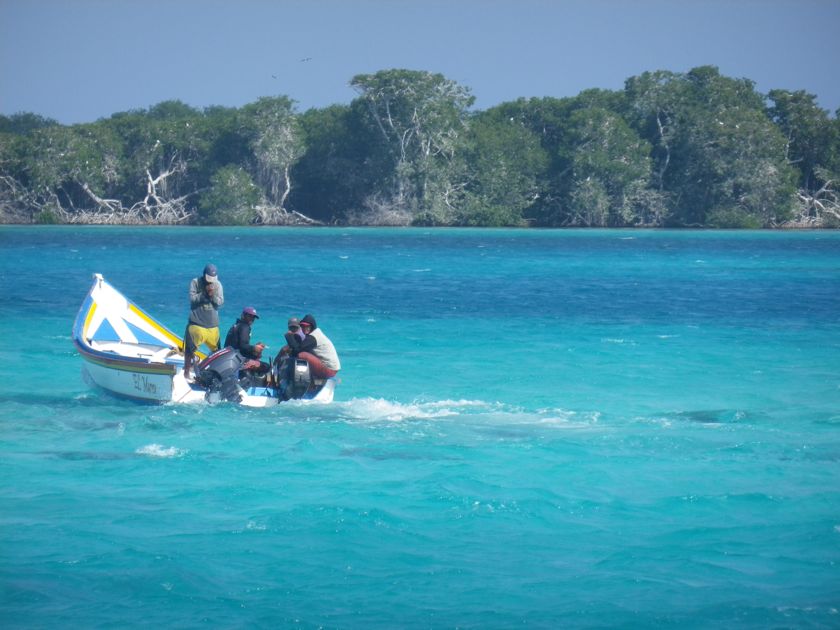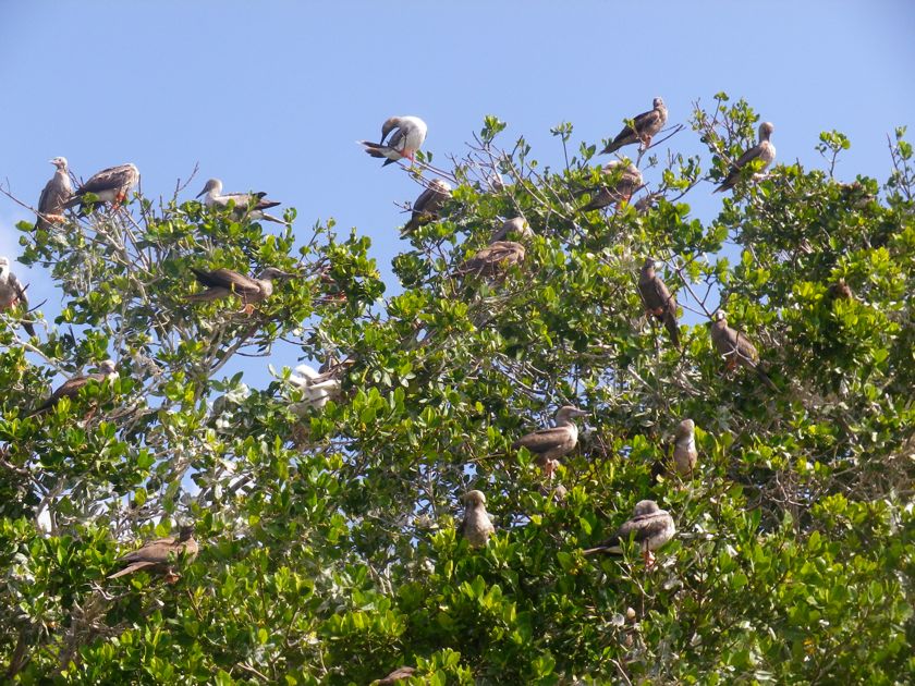 Nous avons vécu huit jours extraordinaires "hors piste" : trois jours de navigation idyllique au portant entre St-Martin et les Roques, puis cinq jours de cabotage dans des lagons incroyables et déserts. La palme revient aux Aves de Barlovento et sa haute mangrove grouillant de fous à pieds rouges dont les petits ressemblent à des peluches. Les pêcheurs sont venus nous vendre de la langouste et repartent heureux des quelques paquets de cigarettes que nous avions emportés pour eux et des 20 litres d'eau que nous leur avons dessalinisés. Ils restent deux mois isolés dans leur campement très sommaire avant d'avoir un mois de congé chez eux, à Margarita, et profitent donc des rares bateaux de passage.