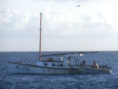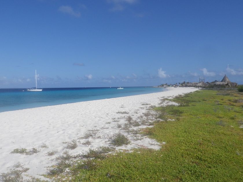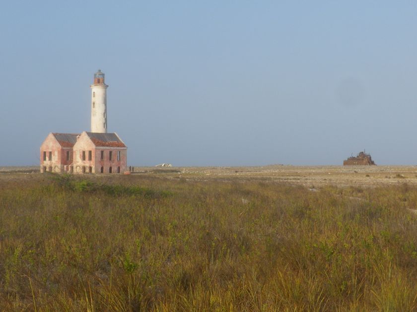 Mardi 18 mars 2014 : Klein Curaçao est un îlot situé à sept milles à l'est de Curaçao. Nous y avons passé quatre jours à regarder les touristes débarquer et envahir la plsge la journée, et à retrouver un petit paradis rien que pour nous et quelques pêcheurs en fin d'après-midi. Le gardien de ce phare photogénique est parti depuis très longtemps et les épaves de la côte au vent ne sont pas plus habitées. Comme à Bonaire, le fond passe brusquement de quatre à quarante mètres juste à l'arrière du bateau et ce tombant fait le bonheur des pêcheurs, avec qui Pierre va discuter, et même des dauphins qui le longent un après-midi et passent sous notre bateau après avoir fait une petite cabriole pour nous saluer.