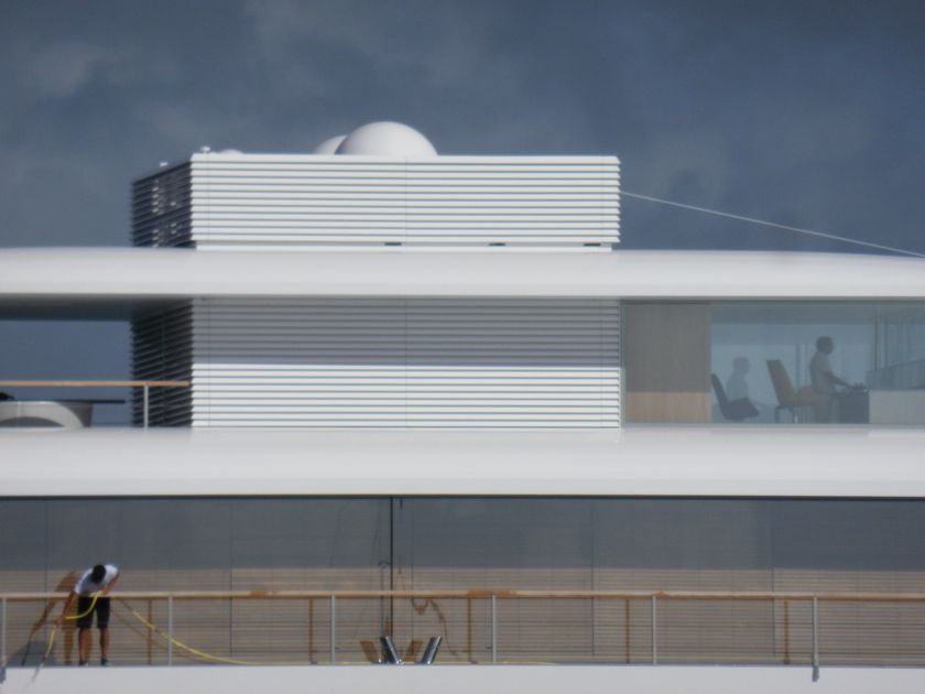 Dimanche 19 janvier 2014 : Devinez où nous sommes... St-Martin, le terrain de jeu des ulta-riches où la dernière mode est de faire flotter sa villa ! "Venus" devrait s'appeler "iBoat"..., acheté avec l'argent de tous nos iBook, iPod, iPad, iPhone !!!