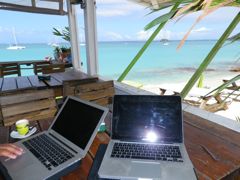 Jeudi 6 novembre 2014 : Nous voici de retour à Curaçao depuis dimanche après un voyage un peu épique. Non, ce n'est pas l'intérieur d'Anegada revisité par un designer... mais notre bel hôtel "St-Tropez". Cela nous permet d'éviter les nuits infernales sur le chantier, à se battre contre les moustiques et la chaleur. On prendrait vite goût au luxe ! Mais aujourd'hui le bateau a retrouvé son élément et ce soir nous dormirons à bord.