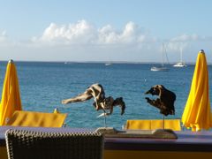 C'est grâce ou à cause de notre éolienne que nous sommes ici car elle a décidé de nous quitter par un magnifique plongeon au milieu du canal de la Dominique... soudure fatiguée et vagues cassantes ! Alors après avoir été régalés pendant deux jours aux Saintes par Georges et Pierrette dans leur restaurant Un Ti Bo Doudou, nous avons continué notre route au nord. Vent portant, 7,9 noeuds de moyenne, pleine lune en soirée... une navigation de rêve entre Deshaie et St-Martin. Et on est arrivé à temps pour la soirée reggae du samedi à Grand Case !