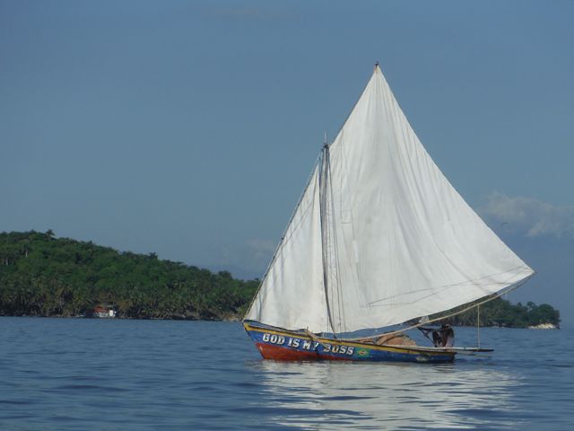 Jeudi 25 décembre 2014 : Nous passons Noël à... Barahona ! Après un aller-retour rapide et pénible (le retour !) à l'île à Vache/Haïti. Beaucoup de gens ont adoré ce coin... nous ne nous y sommes pas sentis à l'aise. La beauté n'a pas compensé la misère, la révolte face à notre impuissance. Nous n'avons surtout pas eu l'envie d'y rester plus de quelques jours et comme la fenêtre météo se présentait tout de suite pour un retour, nous l'avons saisie au vol ! Nous garderons l'image de ces belles barques sous voiles dans un paysage magique et quelques beaux sourires.
