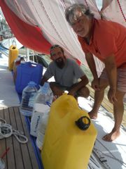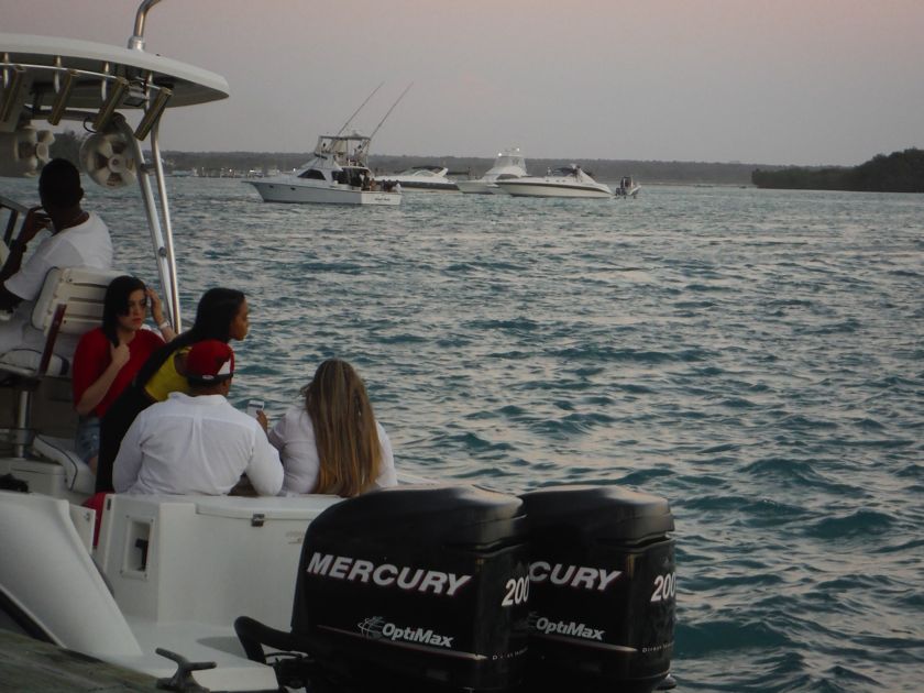 Dimanche 11 janvier 2015 : Un samedi à Boca Chica avec les ingrédients indispensables : le bateau, les gros moteurs, les hauts-parleurs et... les chicas !!! Tout cela pour aller frimer à 50 m de la marina en faisant le plus de bruit possible ! Pour nous les ingrédients ont été différents : bonne compagnie de Lucien et de Victoria (de notre village mais aussi un peu de Rep Dom !), magnifique terrasse sur la mer et délicieux repas de ses fruits ! Nous sommes à la marina Zarpar pour un mois et avons eu notre première pluie... normal, on venait d'ouvrir des trous sur le pont pour refaire l'étanchéïté !!!