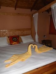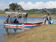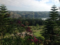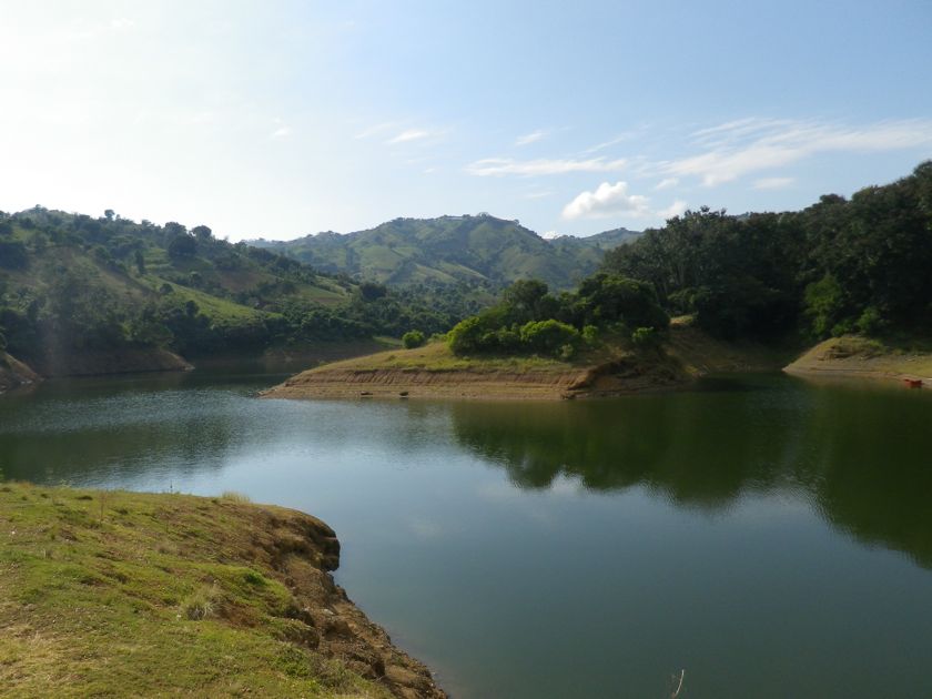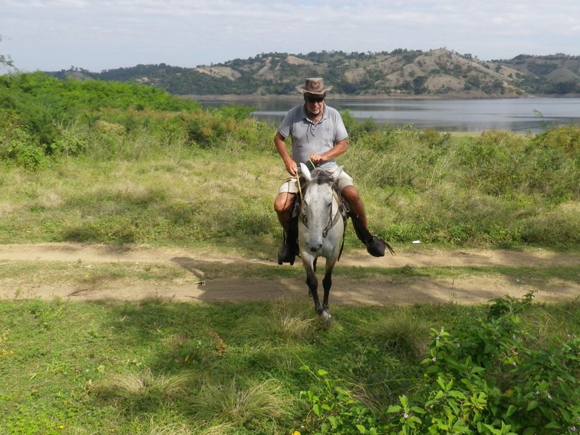 Dimanche 25 janvier 2015 : Nous revenons d'un week-end à la campagne ! Fuyant le bruit de la marina, nous avons pris la clé des champs et sommes tombés (merci internet !) sur un petit paradis, une maison d'hôte au milieu de collines verdoyantes, dominant la retenue d'eau de la ville de Santiago. Juan-Carlos et Ruth, les propriétaires, sont adorables. Ils cuisinent pour nous avec les produits de leur jardin organique, nous parlent de la région, de leur vie. Des chevaux sont à disposition pour une ballade (Pierre y a presque pris goût !), ainsi que des canoës et même un petit dériveur ! Comme la route pour arriver aux Villas del Lago n'est pas goudronnée sur les derniers 3 km et que nous n'avions pas loué de 4X4, ils sont venus nous chercher en barque au barrage, de l'autre côté du lac ! Nous sommes conquis par l'intérieur de la République Dominicaine et ses paysages somptueux !