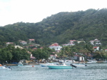 D'abord vous verrez la baie magnifique, parsemée de voiliers de passage, bordée de cocotiers et de maisonnettes aux toits rouges ou oranges. Il paraît qu'elle ressemble, en petit, à celle de Rio. En tous cas il y a le "pain de sucre". Bien sûr il y a quelques ferries qui amènent les touristes de Guadeloupe pour la journée, mais ils se dispersent vite, à pied ou en scooter et cela fait vivre l'île. Grâce à cela, les jeunes trouvent du travail et restent. |