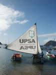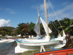 Si vous êtes invité à naviguer, attention ! C'est plus chatouilleux qu'un Laser et le vent arrière est acrobatique avec cet immense gui (bôme) en bambou. Mis à part quatre poulies pour la grand'voile, aucun accastillage ni aucun câble n'est autorisé ! Même pas de girouette ! |