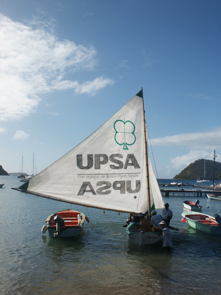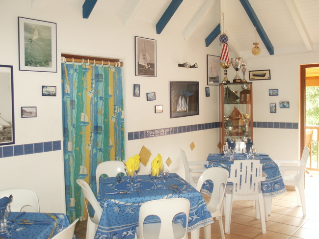 Nous vous emmènerons certainement manger au restaurant de Georges, "Les 3 boats", décoré de photos de saintoises et de nombreuses coupes gagnées en régate. Au menu, "cuisine créole traditionnelle, piquée d'un zeste de gastronomie". Vous vous régalerez. Mais si vous lui demander la signification de certains noms de plats ou de sauces qui vous interpellent, il éclatera de rire et avouera que cela ne veut rien dire, que le nom lui plaisait. |