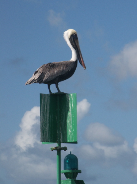 Les pélicans se reposent sur les arbres, les bateaux ou les bouées avant de partir en chasse. Nous n'avons pas vu de tortue mais il paraît qu'elles viennent pondre sur les plages. Il y a aussi un quantité d'animaux plus habituels, les chèvres, les poules et surtout les coqs que vous entendrez toute la journée. |