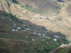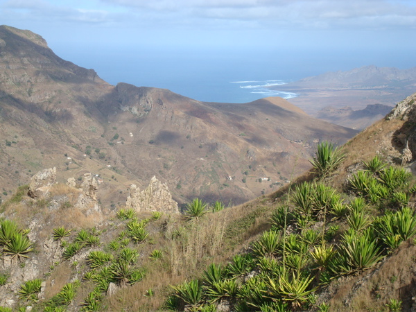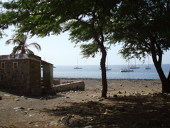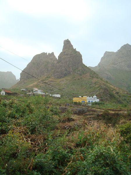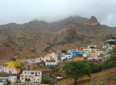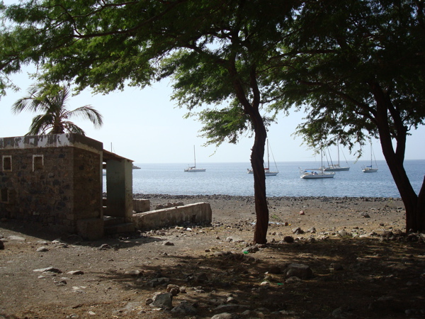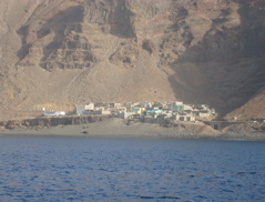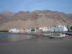 Sao Nicolau... "moins touristique", "plus agricole", "plus française"... la lecture des guides nous amène irrésistiblement vers cette petite île située entre Sal et Sao Vincente, dans les îles du nord. Vu depuis le mouillage, c'est une île montagneuse, dominée par le Monte Gordo, est aride. Dans le bourg de Tarrafal et les quartiers des environs , quelques maisons crépies font des tâches de couleur vive qui contrastent avec les murs sombres en parpaing de ciment de la majorité des constructions. Ce sont les émigrés qui construisent beaucoup. La diaspora capverdienne est très importante, tant aux Etats-Unis qu'en Europe, et les capverdiens survivent surtout avec son aide. Les liens avec le Cap Vert restent très fort et les émigrés reviennent souvent au pays. Depuis le bateau, nous pouvons observer la vie quotidienne des quartiers les plus populaires : la plage de gros galets sert à la fois de toilettes publiques et d'étendage à linge ! Le puits et le lavoir sont juste en face de nous et nous voyons les femmes puiser l'eau et repartir avec leur bidon sur la tête. Avant Noël, nous voyons même un groupe faire boucherie avec un porc.