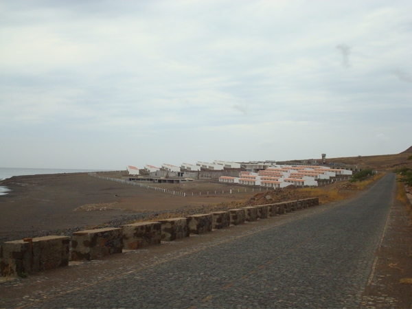 D'autres sont très vivant, malgré leur éloignement. C'est le cas de Chun. Pour s'y rendre, nous longeons d'abord la mer et passons derrière un horrible lotissement qui devait être un hôtel et qui n'a jamais été terminé. Nous passons dans Praia Branca, village coloré où nous voyons une superbe araignée. En fait, il y en a partout, accrochées à d'immenses toiles qui longent les routes de l'île. Plus loin, la route devient tortueuse et le pavage est en cours.
