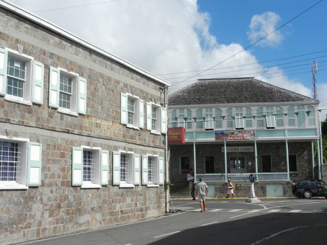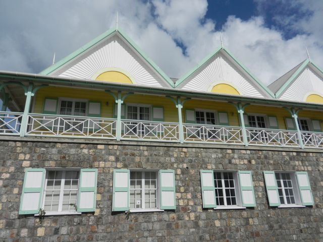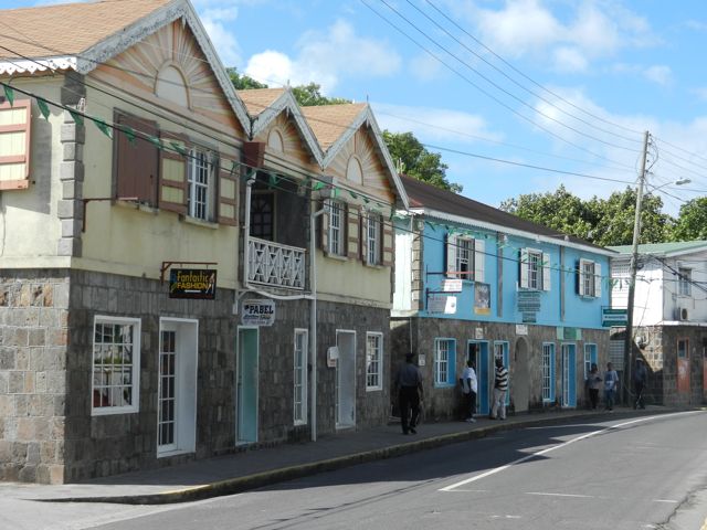 Le lendemain, nous traversons les "Narrows", le chenal très venté qui sépare les deux îles et mouillons devant Charleston. La ville me plaît tout de suite avec ses vieux bâtiments coloniaux bien restaurés. Le 1er étage est en pierres volcaniques, le second en bois, peint de jolies couleurs et décoré de frises dans le style appelé "gingerbread". Nous effectuons les formalités et découvrons que si St-Kitts et Nevis font partie d'un seul pays, paradis fiscal soit dit en passant, les îles sont des soeurs ennemies et Nevis parle quelques fois même d'indépendance. On devra donc annoncer notre départ de Nevis et obtenir un permis pour aller sur St-Kitts !