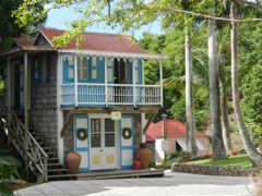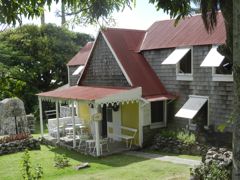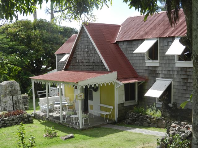 Hermitage, plus cosy, donne un superbe exemple de la construction en bois type gingerbread. On imagine effectivement facilement la sorcière dans sa maison en pain d'épice ! Il semble que la partie principale (photo de gauche), qui date de la fin du 17ème siècle, soit la plus ancienne maison en bois subsistant aux Antilles. On se croirait chez nous avec ces tavillons !