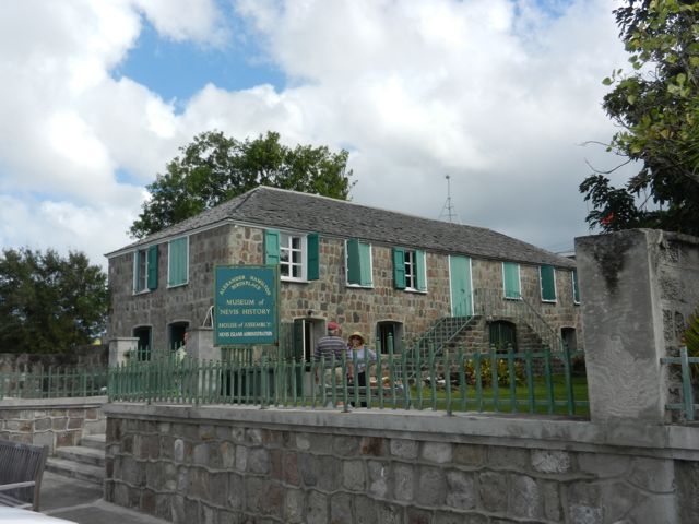 Pendant que Pierre explore les supermarchés, je fait une visite au petit musée situé dans la maison natale de Alexander Hamilton, deuxième personnage important de l'île avec l'amiral Nelson, et qui devint à la fin du 18ème siècle le premier secrétaire au trésor des USA, sous Georges Washington. Mais le musée est décevant. Le supermarché était intéressant paraît-il, mais très éloigné et c'est un américain habitant Nevis et possédant un voilier qui a reconnu le navigateur épuisé le long de la route et l'a pris dans son pick-up !