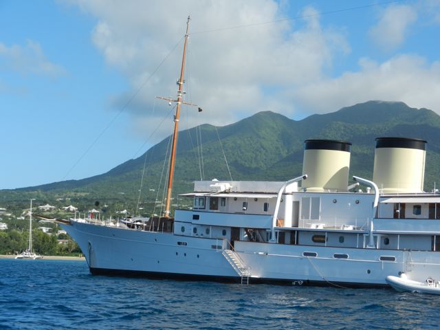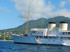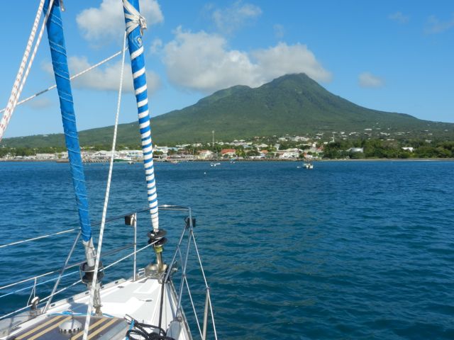 En manque de découvertes, j'ai prévu une viste à Nevis, une des rares îles antillaises que nous n'avons pas encore explorée alors que nous nous sommes arrêtés deux fois à St-Kitts, sa voisine. Pierre n'est pas enthousiaste car il pense qu'il n'y a pas de bon mouillage à cette saison. C'est vrai que l'île est toute ronde, dominé par un volcan souvent coiffé de blancs nuages. Christophe Colomb, lors de son second voyage, l'a appelée Nuestra Señora de las Nieves pour cette raison, ce qui a été raccourci en Nevis, plus commode ! J'ai donc compulsé les guides, les sites internet et... tenu bon ! Cap sur Nevis après notre réveillon à Antigua.