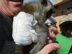 De là on pourrait, avec de bons genoux, monter sur le volcan, profiter de la forêt tropicale et voir les nombreux singes, amenés vraisemblablement par les français à l'époque où ils se disputaient l'île avec les anglais. Nous n'en verrons que quelques pauvres exemplaires à St-Kitts, affublés de pampers pour ne pas salir les touristes qui débarquent de leur paquebot.