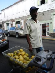 Le vent fort se prolongeant, notre mouillage se remplit petit à petit car il n'est finalement pas rouleur. Nous palmons jusqu'à la plage et découvrons une série de petits bars très sympas à côté du Four Seasons. Cela mériterait une sortie nocturne mais l'atterrissage en annexe avec des vagues n'est pas notre spécialité, surtout de nuit ! La vie en bateau n'a pas que des avantages ! Et puis c'est le moment de retraverser sur St-Kitts pour faire un peu de snorkeling, quelques courses et les sorties du territoire. En ville, je constate que la famille a toujours pignon sur rue (le nom de jeune fille de ma mère est Delisle !). Nous réussissons à acheter des pamplemousses de la Dominique à Jean-Baptiste, établi depuis vingt ans à St-Kitts mais qui parle encore un français/créole très compréhensible.