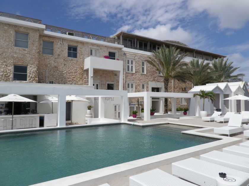Et maintenant au travail ! Par 33 ° dans le bateau, sans air, on remarque vite qu'on ne sera pas super efficaces ! Heureusement qu'on peut retourner à midi et à 5h dans notre petit paradis avec piscine et climatisation ! Comme nous avons bien travaillé cet été, nous nous offrons ce luxe de ne pas dormir sur le chantier, au milieu des moustiques ! Nous sommes dans le quartier coloré de Pietermaai, au bord de la mer, et l'hôtel est très classe. On regarde le coucher de soleil depuis la piscine à débordement. La vue depuis le balcon est sympa... Va-t-on vraiment retourner vivre en bateau ? On se pose parfois la question !