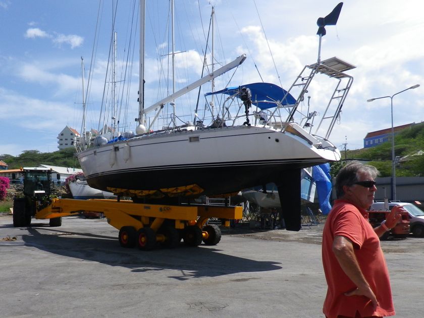 Surtout que le "travail" ne se déroule pas tout-à-fait comme prévu. Notre safran a du jeu et nous devons changer les bagues en ertalon. C'est à dire démonter tout le système de barre à l'arrière du bateau, dans un coin peu atteignable. Nous l'avions fait au Cap Vert quand notre safran avait cassé, mais nous avions trouvé une perle, José, un jeune Capverdien astucieux et "fit". Nous sommes bien décidés à faire faire le travail par des professionnels et espérons trouver des gens compétents à Curaçao. Mais les hollandais sont trop bien nourris et le patron du chantier nous envoie carrément promener en nous disant que personne de son équipe ne peut entrer dans notre coffre (qu'il n'a même pas vu !) ! J'y arrive bien moi ! Et je ne suis ni petite ni maigre ! Un peu souple... oui ! Donc je m'y colle. Mais je n'ai pas la force nécessaire à dévisser des boulons serrés par la corrosion créée par l'inox au contact de l'alu. On trouve tout de même un jeune sur le chantier... qui n'y arrive pas non plus ! On est prêt à abandonner.