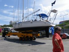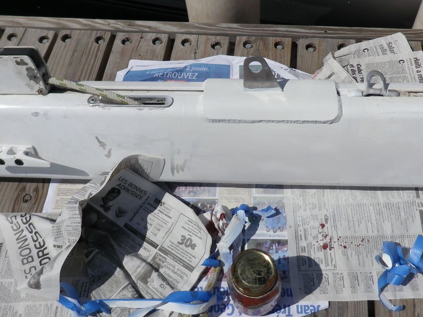Dans les points positifs, il y a tout de même la réparation de notre bôme, Cela a été laborieux aussi d'obtenir le soudeur et de lui faire comprendre ce qu'on voulait, mais c'est fait. Et tellement solide que cela cassera certainement ailleurs la prochaine fois ! On attend toujours la trinquette, mal taillée à l'origine, et donnée en mars à la voilerie Doyle pour l'améliorer. Mais le voilier a le chigungunya... Pas de chance !