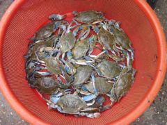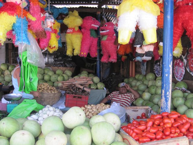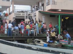 Au bord de l'eau se tient le marché aux poissons et surtout aux crevettes, pêchées à l'embouchure du Rio. On en fait une cure... ça change de la langouste ! Ils vendent aussi des petits crabes aux pinces bleues. Comme d'habitude, Pierre (cherchez-le dans la foule...) se régale de chiner, fouiner et découvrir de bonnes affaires ou de nouvelles choses à goûter.